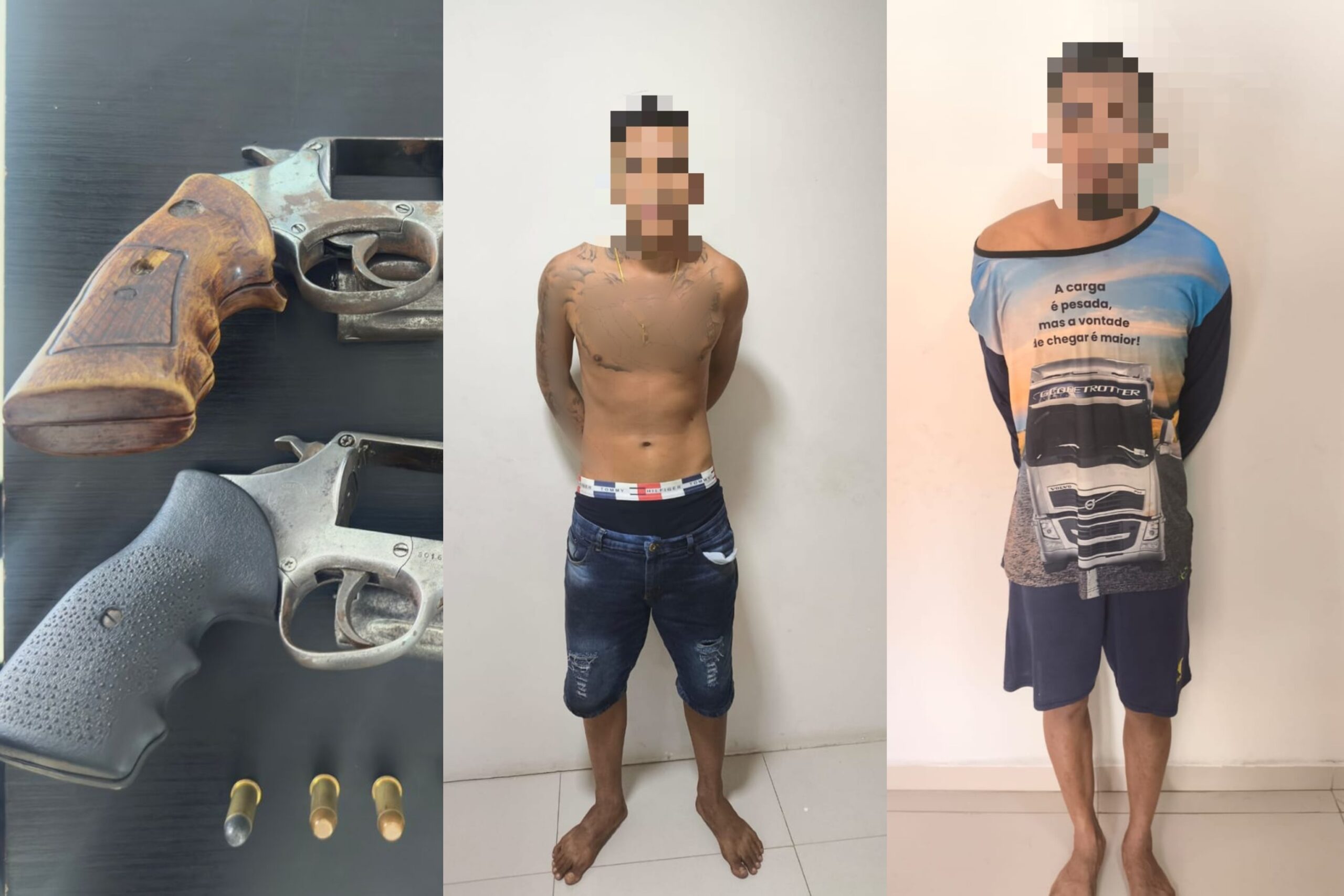 Durante a abordagem, o suspeito informou que havia vindo de outro município para entregar armas e entorpecentes a um comparsa no bairro Rio Verde. Com base nas informações, outra equipe policial foi acionada e se deslocou até o endereço indicado, onde localizou um segundo homem em posse de outro revólver calibre .38, com numeração suprimida e cinco munições intactas.