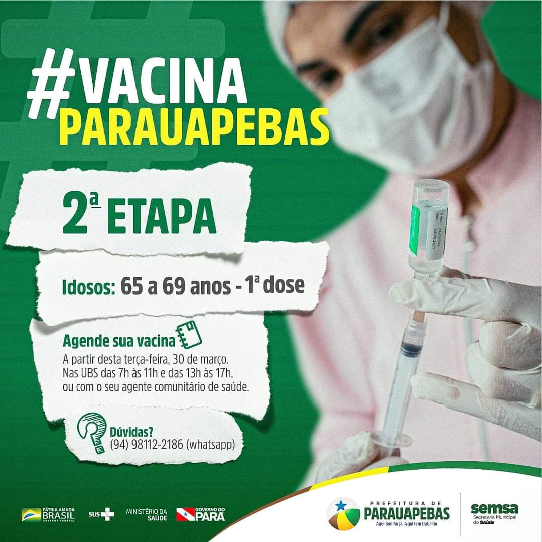 Chegou a vez dos idosos na faixa etária de 65 a 69 anos tomarem a vacina. O agendamento começou nesta terça-feira, 30, em todas as unidades de saúde das zonas urbana e rural do município.