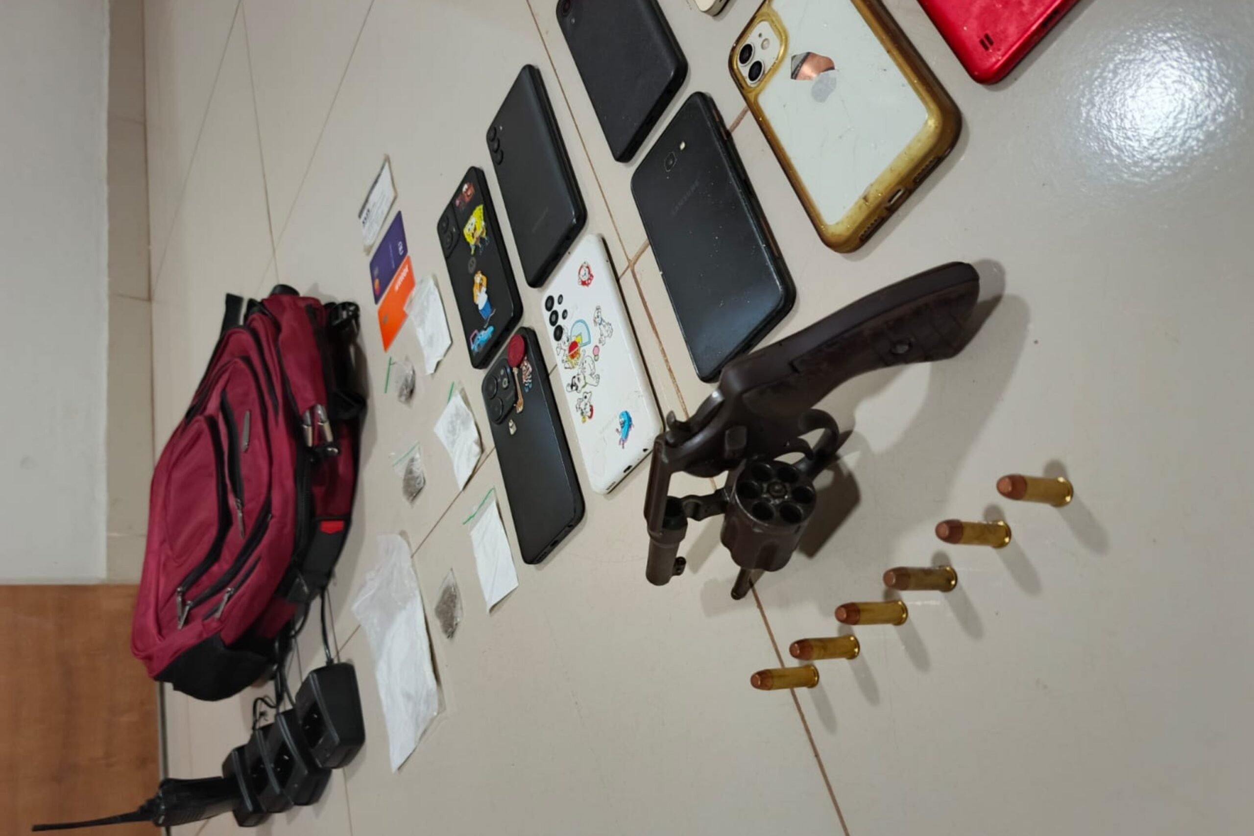 No imóvel, foram apreendidos entorpecentes, uma arma de fogo e dez aparelhos celulares, possivelmente produtos de roubo. O suspeito foi socorrido e encaminhado ao hospital, mas não resistiu e teve o óbito confirmado.