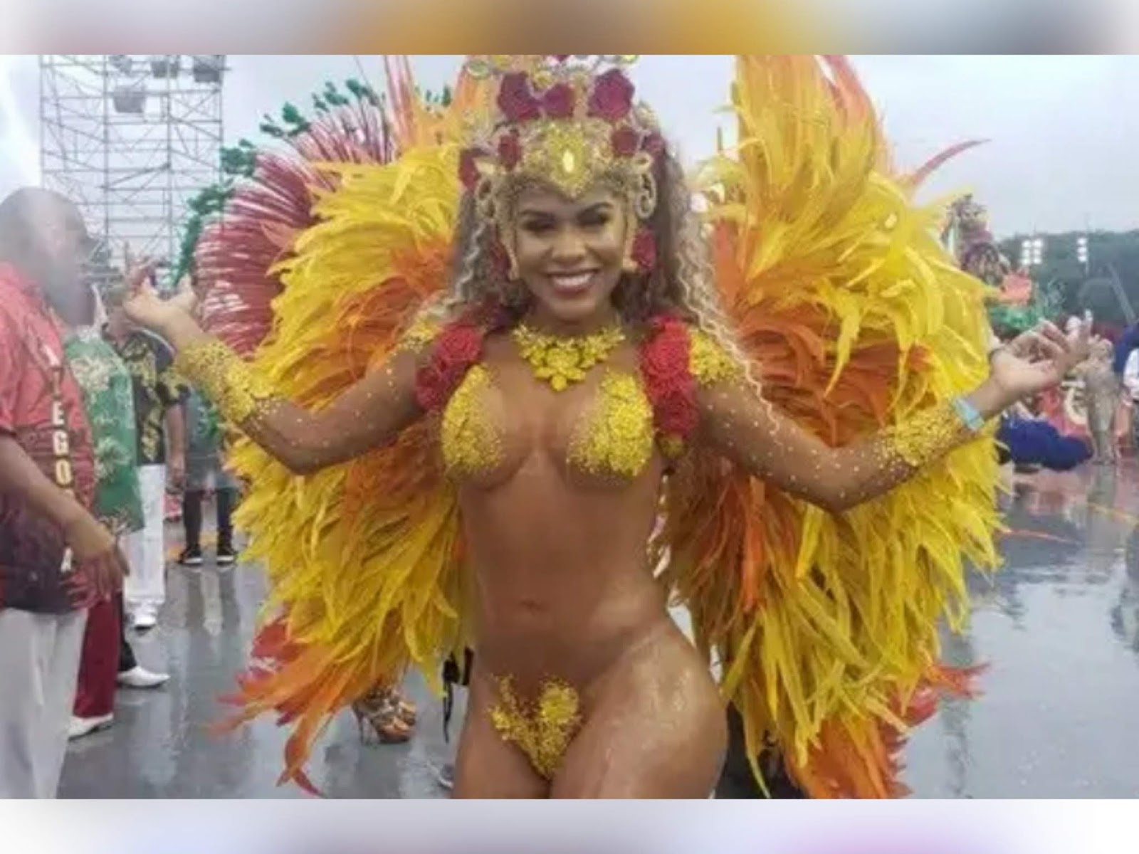 “Não estava preparada, inclusive no último ensaio técnico eu caí no chão. Hoje é torcer pra dar tudo certo, e hoje se torna um pouco mais difícil por estar com costeiro [na fantasia]. Mas vamos lá e cautela na hora de sambar. O solado dessa sandália é liso, não tem proteção, mas isso é algo para observar na próxima vez”, falou.
